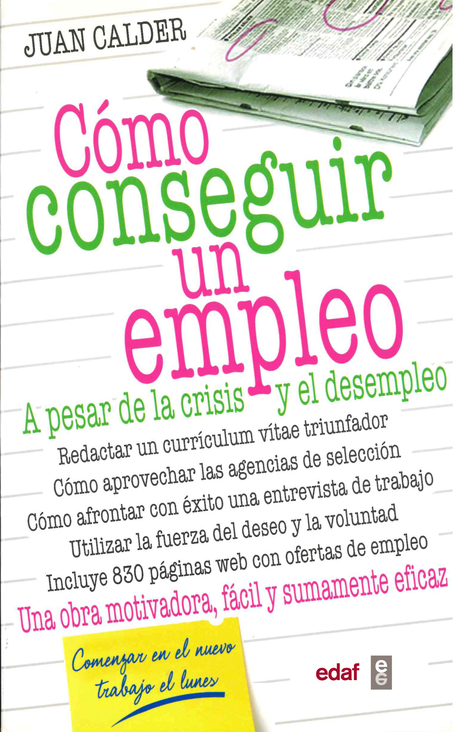 En estos últimos dos años, tanto por causas internacionales como propias de cada país, el mundo sufre una crisis económica que está deparando unas consecuencias muy negativas para el mercado laboral, que provocan enormes dificultades para conseguir el primer empleo o para buscar trabajo después de un despido. Este libro enseña las técnicas de éxito en la obtención de un puesto de trabajo y las estrategias adaptadas especialmente a una situación de crisis económica. El autor, director de empresas multinacionales y ex catedrático, ha dedicado más de treinta años a investigar y conocer las causas del fracaso o del éxito en la conquista de un empleo las cuales explica detalladamente en esta obra. En ella se aborda, por un lado, cómo descubrir y potenciar los imprescindibles valores de corte psicológico y emocional, así como todo lo que una persona debe conocer sobre los aspectos prácticos que van desde cómo redactar y qué debe incluir un currículum, hasta cómo presentarse en una entrevista de trabajo sabiendo de lo que se debe y no se debe hablar, hasta cómo buscar provechosamente las mejores ofertas de empleo que se ajustan favorablemente a cada perfil. Quizá sea este uno de los libros más útiles de que puede disponer alguien que busca empleo, y útil tanto para un ejecutivo, un abogado, un obrero o un técnico o profesional en cualquier oficio o área laboral. Léalo, aprovéchelo y posiblemente comience a mejorar su vida.