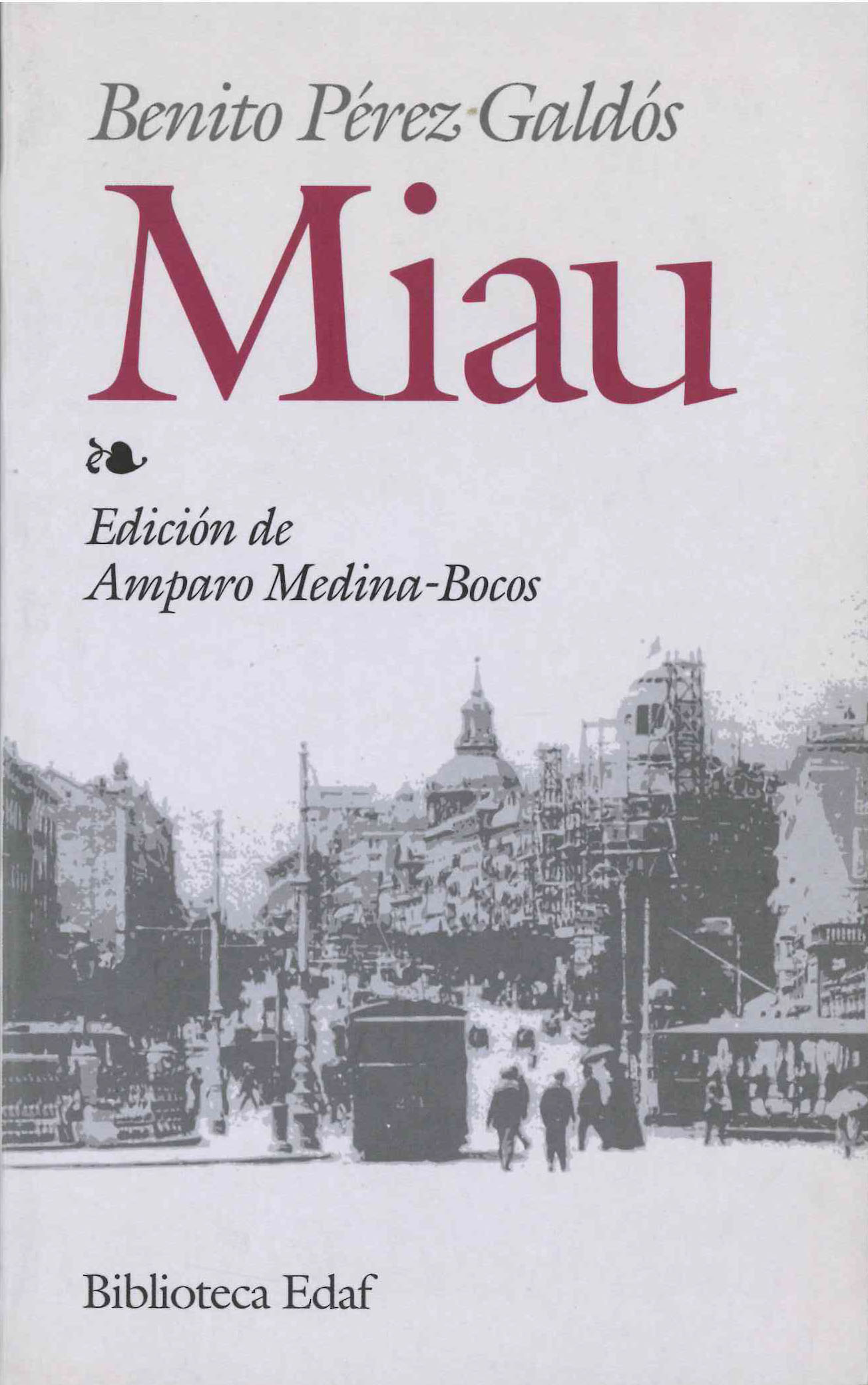 MIAU es un decisivo punto de inflexión en la preocupación casi obsesiva que sintió Galdós desde sus inicios como escritor por ocuparse de los males de España y de sus soluciones, novela con la que consiguió una de sus obras más complejas y logradas.